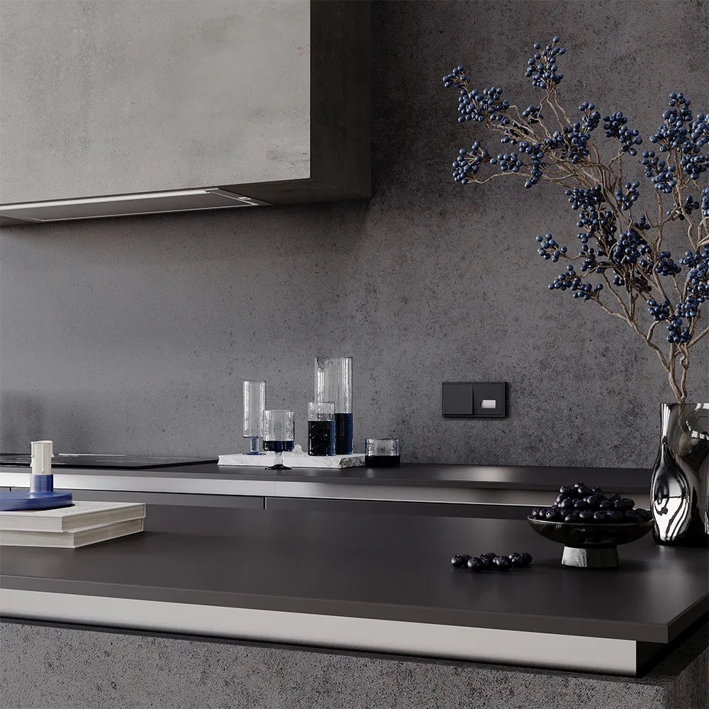 Перекрёстный переключатель полностью совместим с пластиковыми и стеклянными рамками той же серии и гармонично вписывается в любую композицию из розеток, выключателей и других устройств VOLTUM S70.