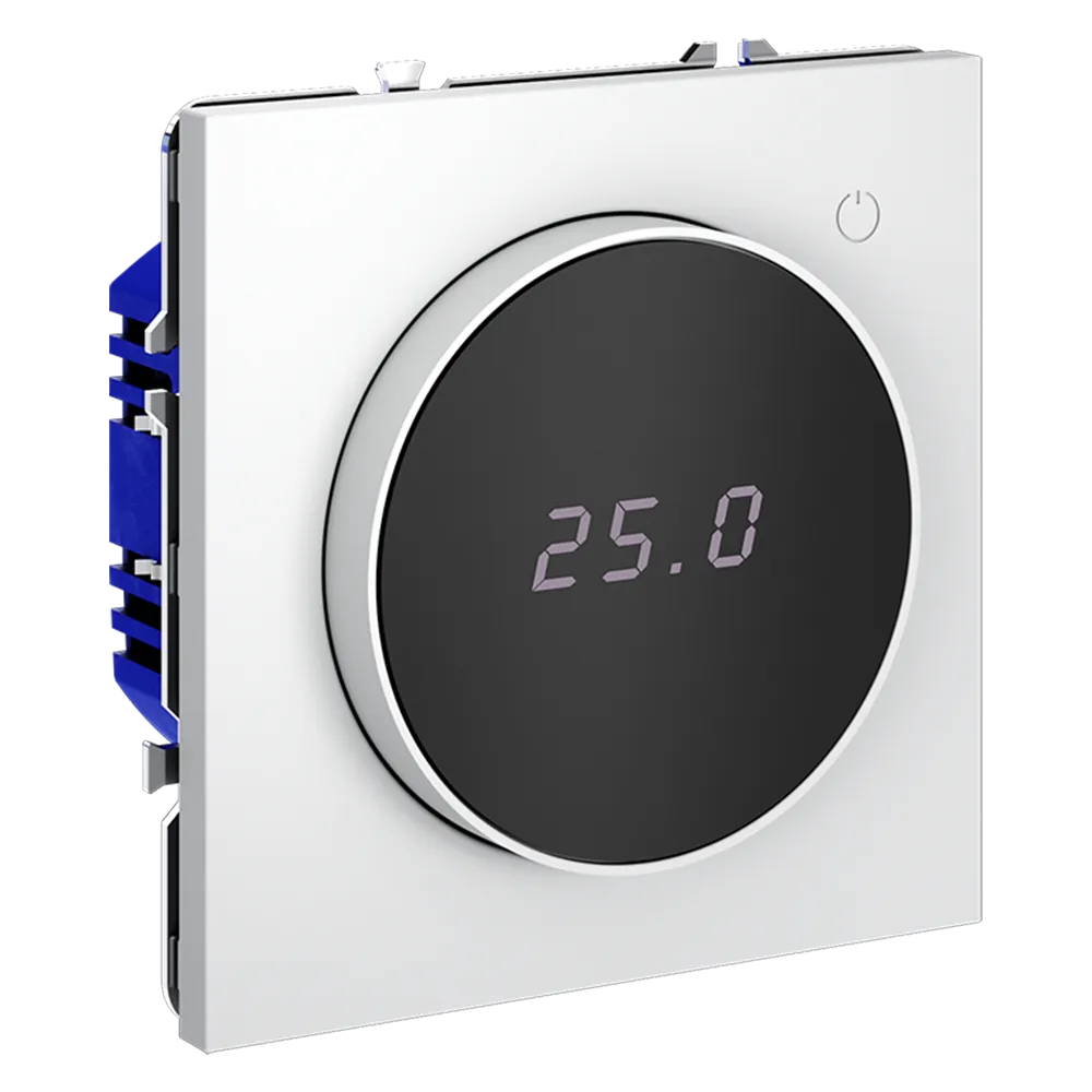 Место установки. Терморегуляторы Voltum предназначены для регулирования температуры электрического теплого пола. Актуальны как в городских квартирах, так и в загородных дачных домах без центрального отопления. Корпус. Дизайн терморегуляторов Voltum сочетается со стилем остальных электрических устройств компании. Они совместимы со всеми рамками. Материал внешних декоративных элементов — поликарбонат. Конструктивные особенности. Терморегуляторы работают с любыми типами теплых полов и рассчитаны на нагрузку до 3500 Вт. Устройства оснащены светодиодной индикацией режима и дисплеем, на котором отображается температура поверхности пола. Красный индикатор — «подача питания на нагревательный кабель (идет процесс нагрева)», отсутствие индикации — «заданная температура достигнута». В течение 15 минут после нагрева терморегулятор переходит в интеллектуальный «спящий режим», уменьшая яркость подсветки цифр и сокращая энергопотребление. Регулировка осуществляется вращением панели управления. Терморегулятор поставляется в комплекте с механизмом из пластиковой накладки и датчиком температуры.