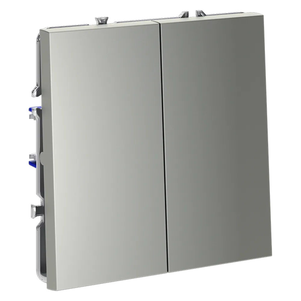 Двухклавишный выключатель самовозвратный VOLTUM S70 в цвете «сталь» — это современное и функциональное решение для одновременного управления двумя независимыми автоматизированными системами, такими как жалюзи и рольставни, ворота и шторы, вентиляция и сигнализация. Благодаря механизму самовозврата, каждая клавиша автоматически возвращается в исходное положение после нажатия, обеспечивая импульсное (кратковременное) управление без фиксации — идеально для систем, требующих точного и безопасного сигнала.